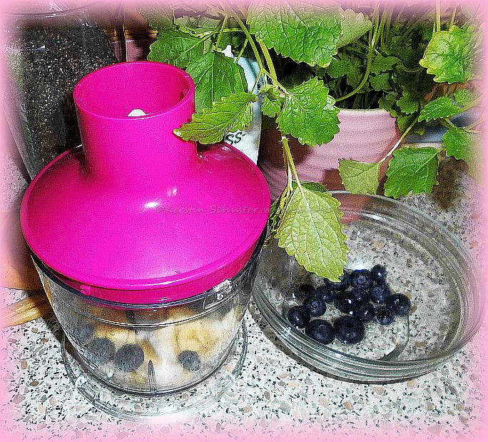 Oder wie wäre es mit einem Blaubeer-Bananen-Smoothie? Ich habe ihn mit Chia und Minze gemacht.