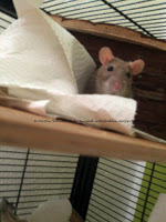 Nach einer gründlichen Reinigung und dem Entfernen der Katzenhaare, fungierte ich den defekten Kratzbaum zum Spielplatz für Farbratten um. Was eigentlich oben war, war nun unten. Und umgekehrt.